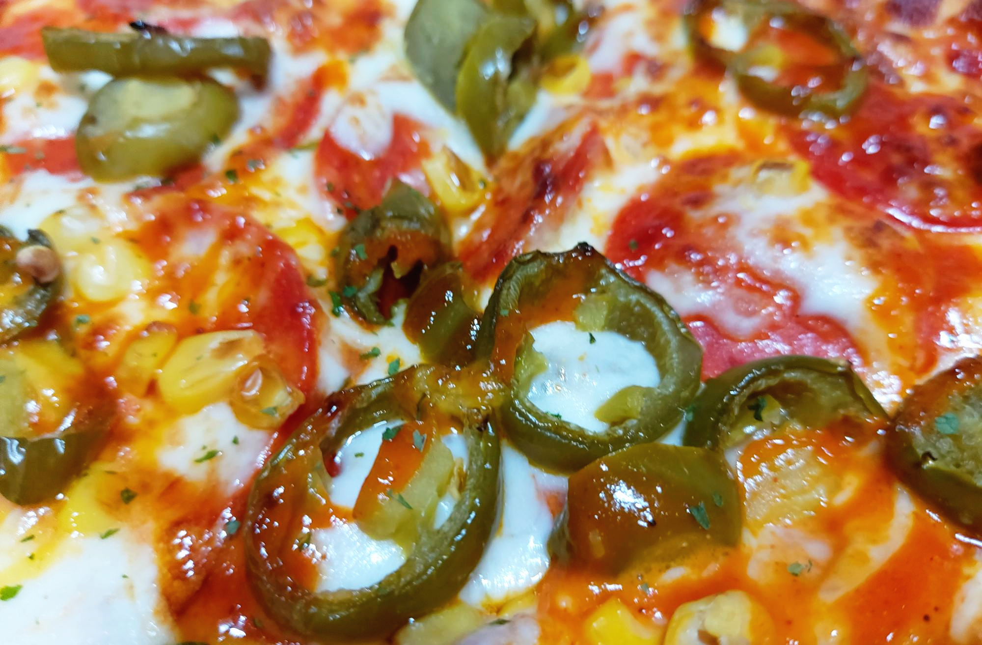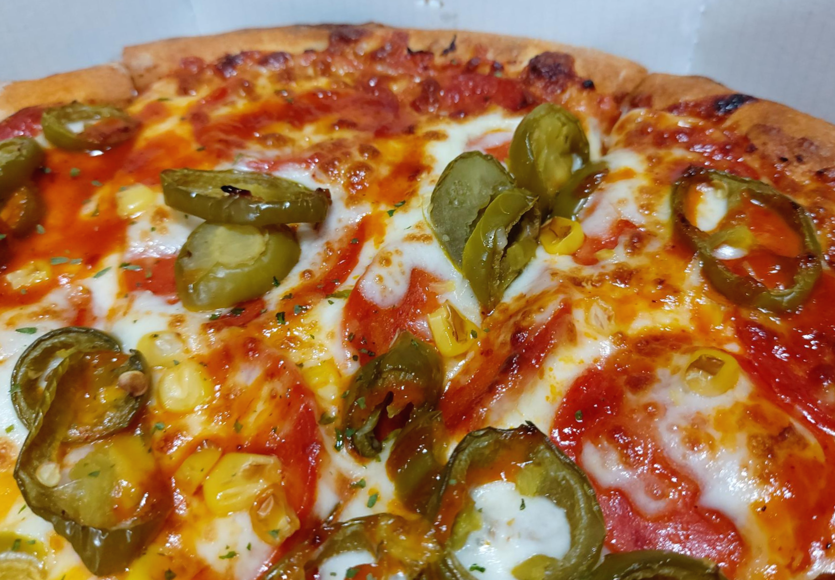 일전에도 소개했었던 매운맛 피자 고스트 페퍼로니 피자입니다. 엄청난 수의 할라피뇨가 보이십니까? 어우, 붉은색 때문에 눈 아파.