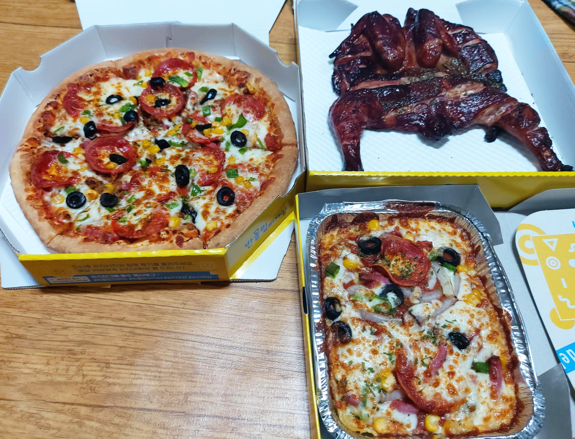 오늘은 조금 다양하게 먹어보고 싶어서 세트메뉴를 주문했습니다. 피자 콜라 치킨 스파게티까지, 햄버거만 있었어도 정크푸드 5종 세트를 완성할 수 있었는데 아쉽네요. 이 많은 걸 혼자 다 처먹냐고요? 아, 그럼요 ㅋㅋ