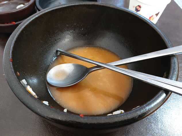 또한 장터 순대의 순대국밥에는 특유의 진하고 칼칼한 국물 맛이 나는데, 전국의 다른 국밥집에서는 느껴본 적 없는 맛이었습니다.(제 기준으로는요 ㅎㅎ) 학생 때 먹던 그 맛을 잊지 못해서 최근 들어야 장터 순대를 찾아가게 되었는데, 놀랍게도 약 십여 년 전의 맛이랑 지금이랑 큰 차이가 없었습니다!