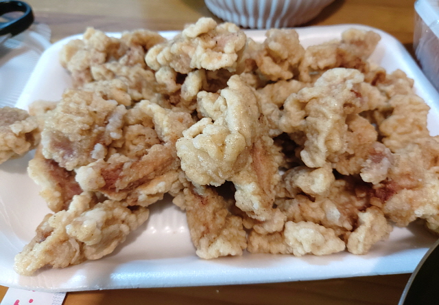 탕수육은 그냥 평범합니다. 짬뽕만 먹기 아쉬울 때 하나씩 시키곤 하는데 다른 중국집과 상이한 맛있는 탕수육입니다. 돼지고기를 튀겼는데 평범하다고 맛이 없는 건 아니잖아요.