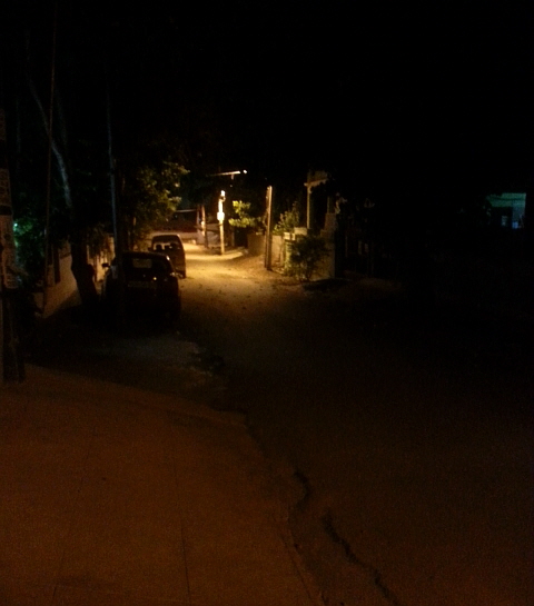 집 앞 거리의 모습이다. 집 주변을 잠깐 산책하면서 찍은 사진이다. 저 멀리서 들개 짖는 소리가 자꾸 들린다. 의외로 가로등이 촘촘히 있어서 시야에는 제한이 없다. 골목 구석에 있는 움막 비슷한 집에서 불빛과 음식 냄새가 나고 있었다. 짧은 산책을 마치고 돌아가니 경비원이 집 대문 앞에서 나를 기다리면서 서성이고 있었다. 땡큐.