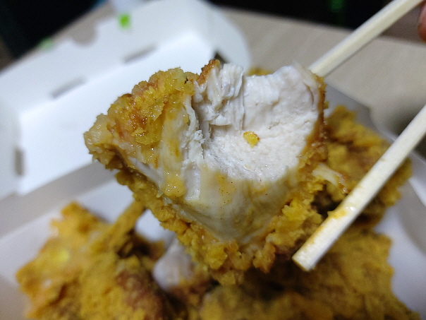 매운맛이 그렇게 강하지 않아서 특정 부위는 보통 후라이드로 느껴지기도 했습니다. 하지만 살짝의 매운맛 덕분에 가슴살 같은 퍽퍽한 부위는 먹기가 편해집니다.