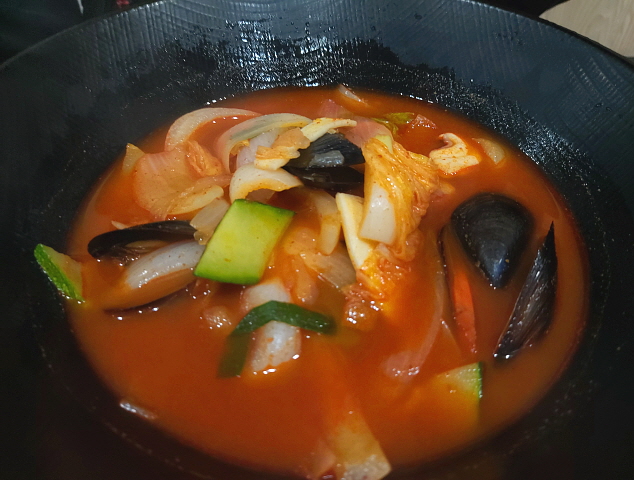 일반 짬뽕처럼 칼칼하고 얼큰한 맛보단 살짝 매콤한 수준이다. 매콤 달콤하고 해물의 향이 잔뜩 배어있어서 정말로 맛있다. 단, 작작하게 볶아서 국물을 더 졸이면 훨씬 맛있고 좋았을 텐데 정말 아쉽다.