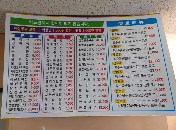 사천성은 메뉴 및 가격표. 다음에는 요리메뉴도 먹어볼 예정이다.