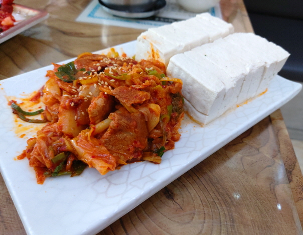 안주로는 정말 딱인 두부김치입니다. 꽤 많은 고기가 볶음김치에 들어가 있어서 두부와 함께 먹으면 단백질이 폭발합니다. 고기고기 두부 두부.