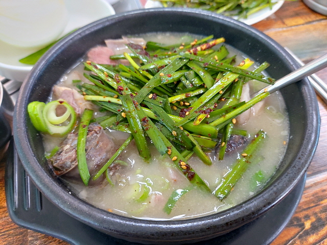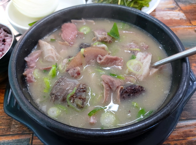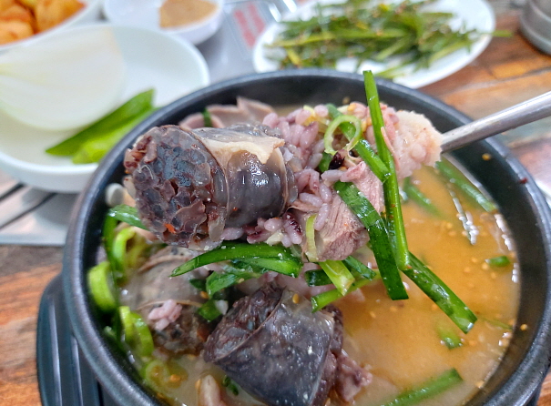 예상대로 고기가 진짜 부드럽다. 푹 삶아진 수육을 먹는 것 같았다. 내장과 순대 역시 진짜 맛있다. 분식집 순대와는 비교할 수 없는 쫄깃함과 감칠맛이 살아있다. 하지만 국물 양에 비해서 고기가 꽤 적어서 곱빼기를 시켰어야 했나 싶었다.
