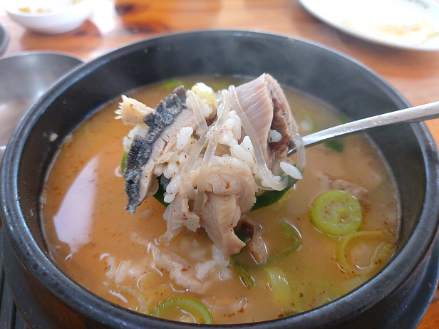 얼큰한 국물 맛에 살짝 부족한 것이 뭔가 했더니 청량한 매운맛이 부족하다. 고추냉이처럼 갈린 고추를 크게 한 숟가락 넣고 나서 먹으니 훨씬 맛있어졌다.