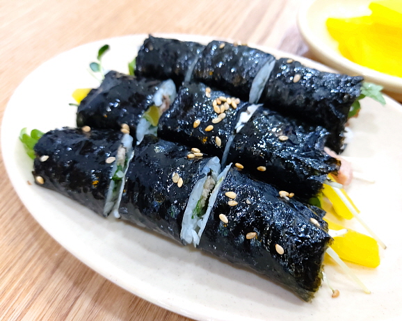 일반 김밥, 마요 김밥, 참치 김밥, 멸치 김밥, 땡초 김밥 등 다양한 종류가 준비되어 있다. 평범하고 작은 김밥이지만, 한입에 먹기 편하다. 의외로 기차역이라는 감성 한 스푼 덕분에 특별한 맛이 느껴지는 듯하다. 아마도.