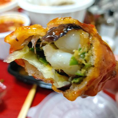 그냥 가지 튀김도 맛있는데, 속재료까지 꽉 채운 새우가지튀김을 얼마나 맛있을까? 새우 꼬리가 마치 손잡이처럼 조리되어있다. 바라는 대로 새우 꼬리 부분을 집었다. 고소한 튀김 냄새와 향긋한 가지 냄새가 폴폴 난다.
