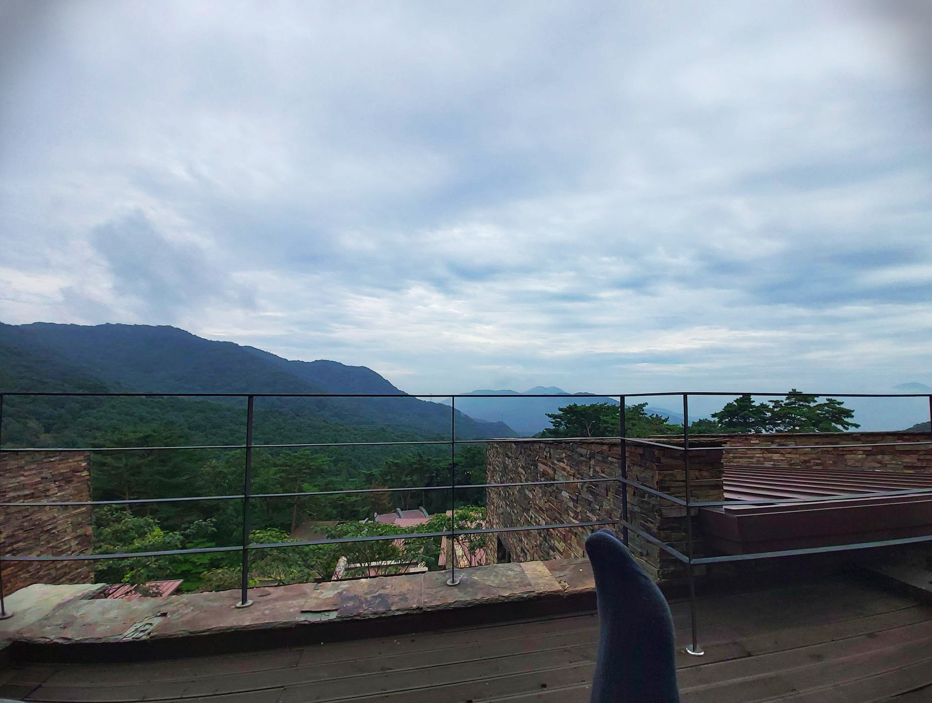 밤새 내린 비는 드디어 그쳤지만, 포레스트 리솜이 있는 주론산에 안개가 잔뜩 꼈다. 산 아래에 깔린 안개가 정말 짙었다. 아침 식사를 하기 위해서 아래로 내려가야 한다.