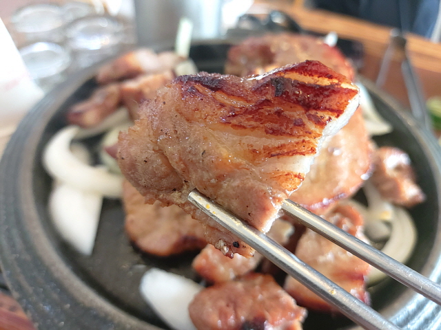 기대를 너무 한 것인지, 조금 실망이었다. 갈비의 식감이 살짝 질기고 푸석푸석했다. 삼겹살과 비슷한 양념이라서 양념 맛은 정말 좋았으나, 문제는 역시 식감이었다. 물론 갈비는 전부 먹어치웠다. 삼겹살보다 못하다는 것이지 고기는 언제나 옳다. 이어서 갈비를 맛보자마자 바로 삼겹살 2인분을 추가 주문했다.