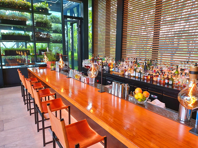 다양한 칵테일용 술병들이 예쁘게 진열되어 있었다. 좌측에 보이는 곳은 다양한 허브와 채소를 재배하는 곳이다. 다른 다이닝의 직원들이 찾아와서 뚝뚝 수확해가는 모습도 보였다. 그나저나 대낮에 칵테일 바에서 차를 파는 걸까?