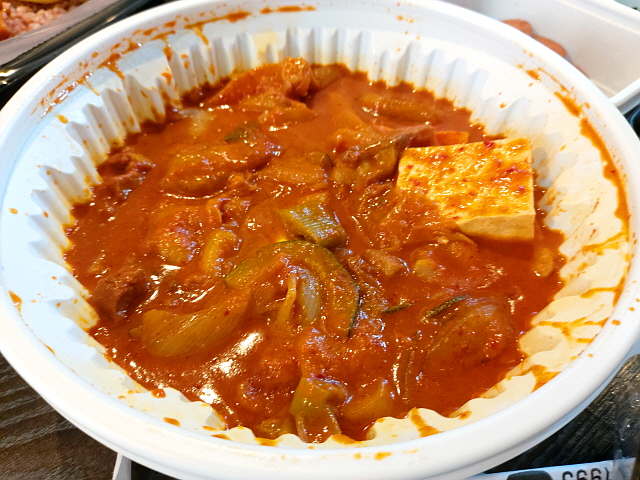 오랜만에 배달시켜먹는 돼지 짜글이다. 새빨갛고 작작한 국물 속에 두부, 감자, 김치, 돼지고기, 햄, 떡 등 정말 많은 재료가 그득그득 들어있다. 매운 정도는 가장 약한 단계로 선택했지만 빨간 겉모습과 매콤한 향기가 침을 고이게 만든다.