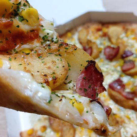 예상보다 치즈층이 엄청 두꺼워서 양파와 옥수수 등의 속 재료과 꽉 차 있다. 감자는 큼직큼직해서 고소한 맛이 잘 느껴지며, 무엇보다 바삭바삭한 베이컨이 진짜 맛있다. 역시 탄수화물 위에 탄수화물을 곁들여 먹는 행위는 정말 환상적이다.