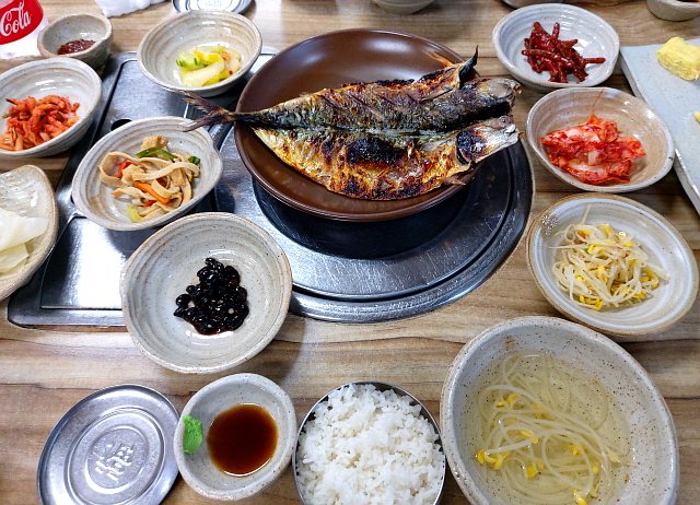 여기 밑반찬이 진짜 맛있다! 김치, 백김치, 콩나물무침, 어묵볶음, 콩자반, 마늘쫑무침, 무생채 등 반찬 하나하나가 정말 맛있어서 밥이 사라진다. 엄마가 만들어 준 반찬 느낌. 오늘의 메인 메뉴인 고등어 구이가 나오기도 전에 숟가락을 멈출 수가 없다.