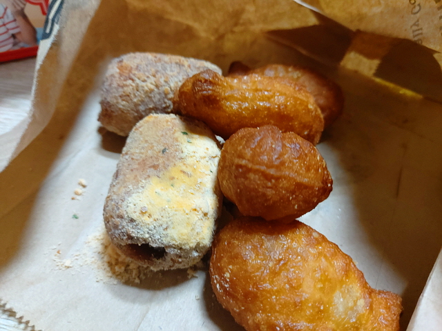 리뷰 이벤트로 받은 오묘한 맛의 미니 핫도그와 미니 붕어빵. 달달한 간식.