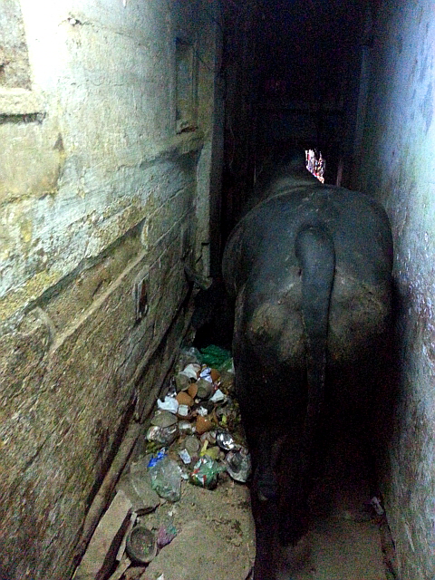 여기는 진짜 다큐멘터리에서 보던 인도의 모습을 그대로 가지고 있었다. 소똥, 개똥이 푸짐하게 길바닥에 놓여 있으며 쓰레기가 여기저기 버려져 있다. 심지어 거대한 소가 길거리를 걸어 다닌다. 엄청 좁은 길을 틀어막고선 움직이지 않아서 가만히 기다려야만 했다.