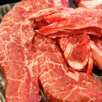 새빨갛게 신선한 소고기가 접시에 담겨서 나왔다. 등심, 척아이롤, 부챗살, 갈빗살 다양한 부위에 퍼진 지방층이 정말 먹음직스럽다.