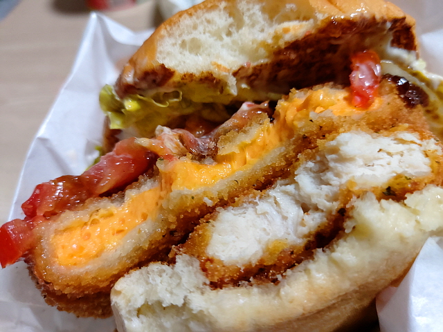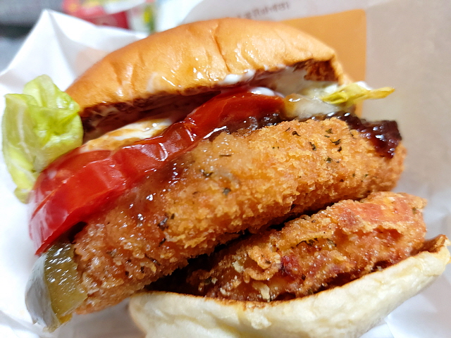 이번 한정메뉴 콘셉트는 치즈렐라다. 치즈를 바삭바삭하게 옷을 입혀서 튀겨서 고소함과 바삭함을 전부 잡은 치즈 튀김 패티가 들어간다. 약 1년 전에, 쭉쭉 늘어나는 모짜렐라 치즈가 가득 들어있는 한정 메뉴를 출시한 바가 있다. 과연 어떤 것이 달라졌을까?