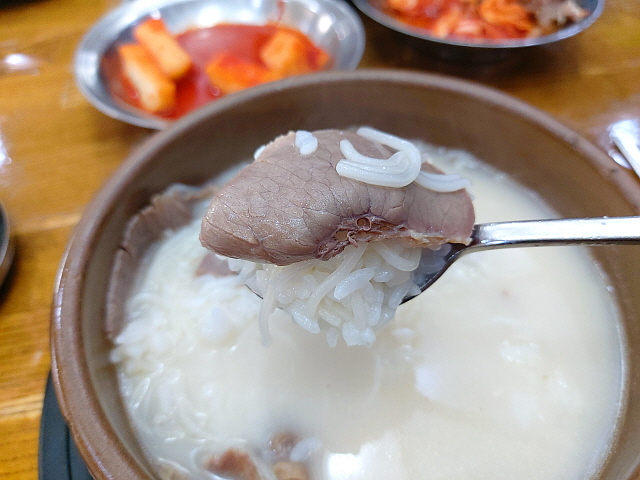 붙어있는 고기의 양이 정말 많았다. 국물은 고소하고, 고기는 아주 쫄깃쫄깃했다. 내 음식이 아니어서 한 숟갈, 한 점만 먹을 수 있다는 것이 아쉬울 정도였다.