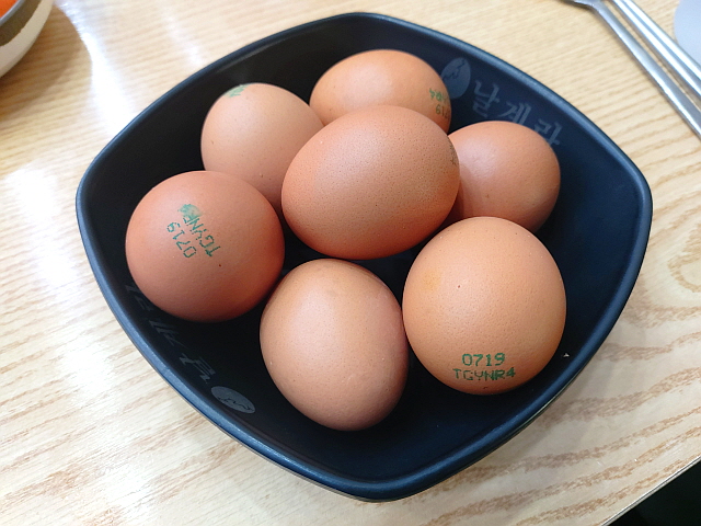 오늘은 가볍게 계란 두 알만 넣었다. 뚝배기가 뜨거워서 국물이 끓어오를 때, 계란을 집어넣어야 잘 익기 때문에 타이밍이 중요하다.