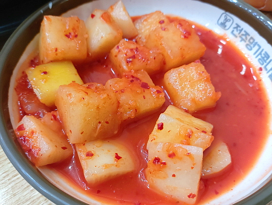 무난한 깍두기 맛, 처음을 제외하곤 추가는 셀프바에서 가져와야한다. 또한 공깃밥 역시 셀프로 양껏 먹을 수 있다.