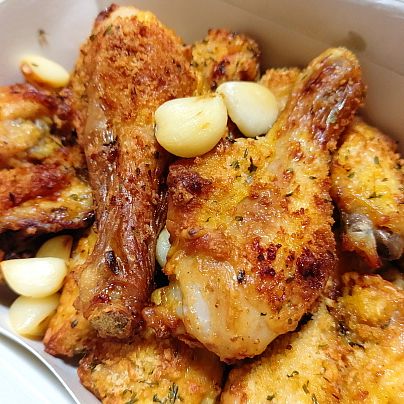 바사삭, 튀긴 이후 굽는 방식을 이용해서 튀김옷의 식감과 바삭함을 극대화한 굽네치킨만의 시그니쳐 메뉴다. 고추 바사삭이라는 가장 인기 있는 제품에 마늘을 이용해 도전장을 던진 느낌이다. 통마늘을 굽고, 마늘향을 잔뜩 입힌 치킨은 다른 브랜드에서도 쉽게 찾을 수 있다. 한마디로 진부한 조합인데 과연 굽네는 어떻게 표현했을까?