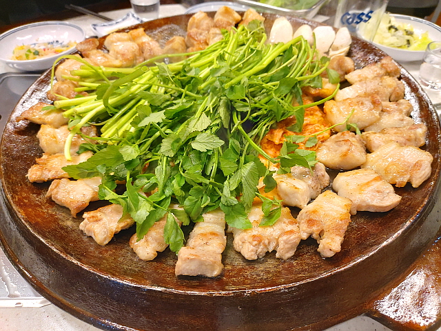 아삭하고 향긋한 미나리와 삼겹살은 정말 잘 어울린다.