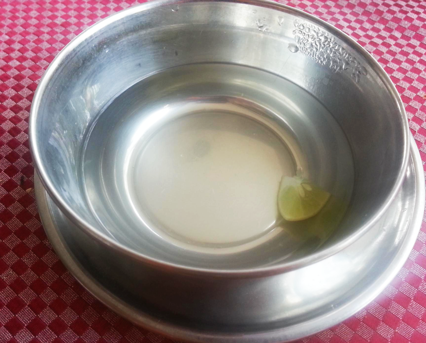 식사를 전부 마치고 입가심으로 콜라를 마시고 있는데, 종업원이 신기한 것이 담긴 그릇 두 개를 가져다주었다. 레몬이 떠 있는 물그릇과 새하얀 조약돌이 담긴 그릇이었다.