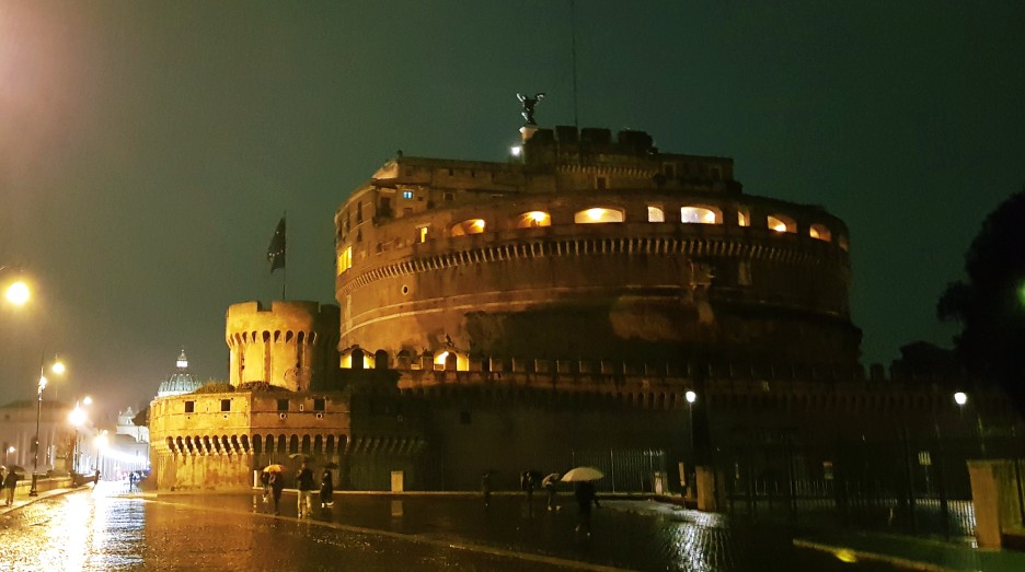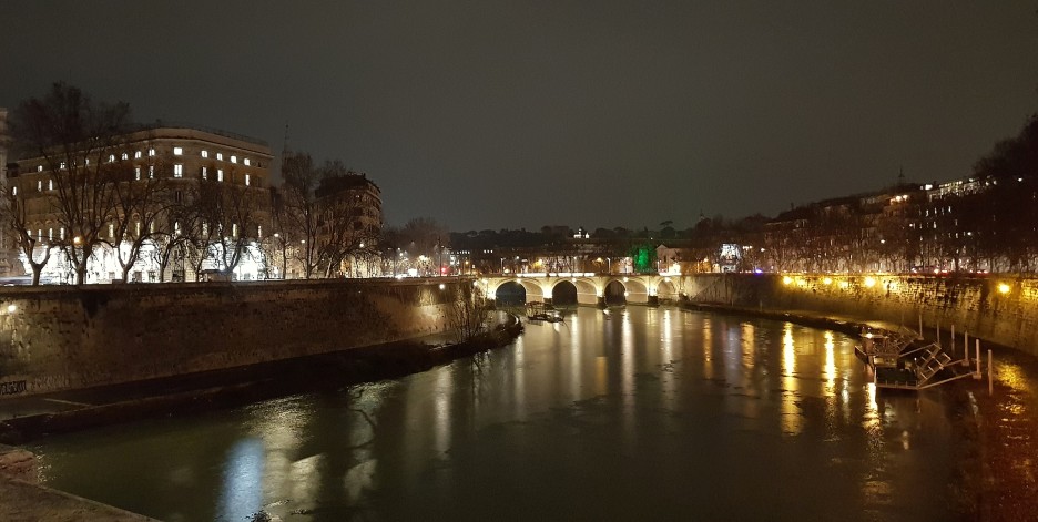 산 지오반니 역 바로 앞 버스정류장에서 탈 수 있는 81번 버스는 로마의 주요 관광지를 전부 거치는 루트를 가진다. 버스에 있는 금발 벽안 청소년 무리들이 무서웠지만, 우리는 조용히 앉아서 창밖을 바라보며 테베즈 강 초입까지 갔다. 비가 내리지 않았더라면 창밖의 광경이 완벽한 야경 시티투어가 되었을 텐데...... 목적지인 성 베드로 성당까지는 5 정거장 넘게 남았지만, 일부러 조금 먼 곳에서 내려서 걸어가기로 했다. 테베즈 강둑을 따라가면 꽤나 많은 랜드마크를 만날 수 있기 때문이다.