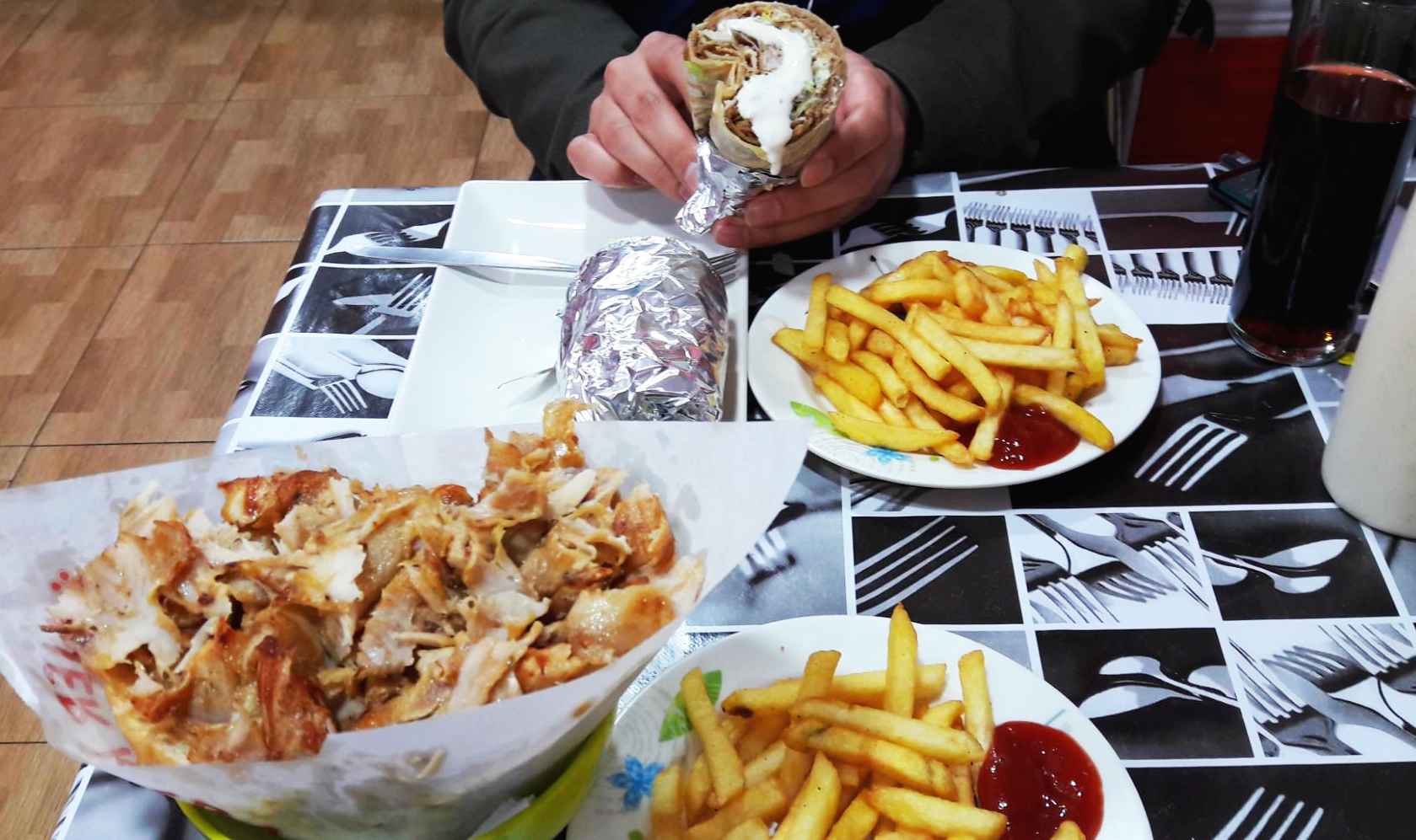 숙소 위치를 대략적으로 살펴보고, 근처에 넓은 공원이나 포켓 스탑이 많은 곳을 찾았다. 하지만 거주 지역이라서 그런지 포켓스탑이 많이 모여있는 곳이 없었다. 내일은 어쩔 수 없이 숙소 근처의 락커룸에 우리 짐을 맡겨두고 카탈루냐 광장에서 커뮤니티 데이를 즐기기로 결정했다. 오늘은 구엘 저택, 구엘 공원 들르고 현재 TORRASA 역에 오기까지 아무것도 먹질 않았다. 집에 가서 저녁을 만들어 먹을까 했지만, 너무나도 배가 고팠다. 지하철역 사거리에 있는 케밥집을 발견하곤 무작정 들어갔다.
