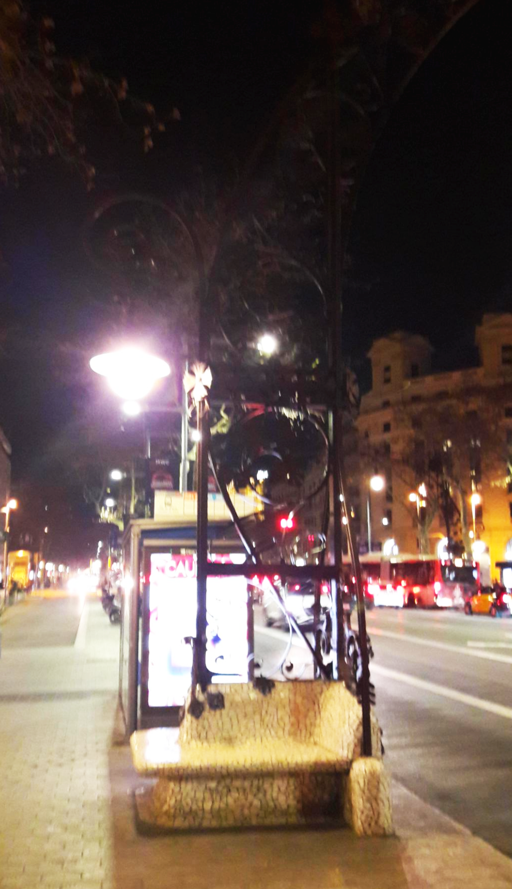 식사를 마치고 1호선을 타고 그대로 숙소 근처로 이동했다. 카탈루냐 역에서 내리면 숙소와 정말 가깝지만, 한 정거장 전인 바르셀로나 대학 역에 내려서 아직 덜 본 건축물들을 감상했다. 카사 밀라나 카사 바트요도 근처에 있었지만, 숙소와는 방향은 정반대였기 때문에 가질 않았다. 그런데 길가에 마치 구엘 공원에서 뚝 떼어서 가져온 듯한 타일로 만들어진 벤치를 발견했다. 지도를 살펴보니 역시나 가우디가 남겨놓은 가로등 벤치가 맞았다. 가볍게 엉덩이 도장을 찍어주고, 카탈루냐 광장으로 향했다.